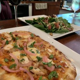 We had a pleasant time enjoying a small bite, flat pizza and sandwich while drinking wine and a couple of ipa beers. The food was delicious. The wine and ipa's were good. They were tasty and complemented the food. The outdoor dining was great so relaxing. The servers were great, nice and checked in on us.